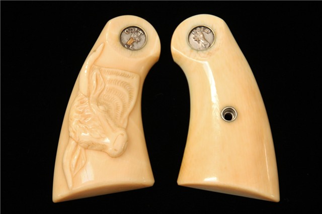 Fronts and backs of Colt Deluxe Carved Steer Head Ivory